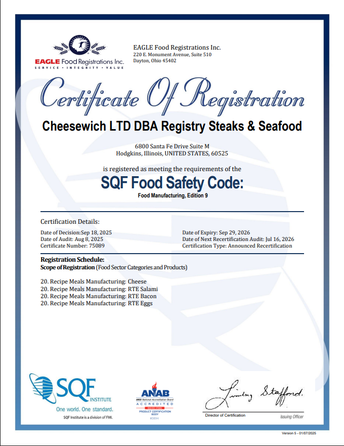 We are committed to maintaining the highest standards of food safety and quality. Our company is proudly SQF (Safe Quality Food) certified, demonstrating our dedication to rigorous food safety and quality management practices. As we continue to grow, we aim to obtain additional industry certifications to further enhance our commitment to excellence.
